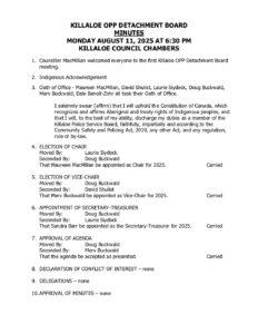 08-11-2025 Minutes Killaloe OPP Detachment View or download this Document Document Date: 2026-02-04 08-11-2025 Killaloe OPP Detachment Board AGENDA 02-9-2026 Killaloe OPP Detachment Board AGENDA