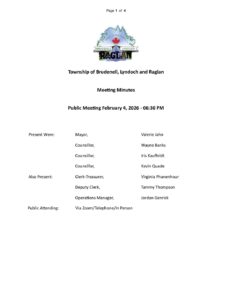 Minutes | Public Council Meeting – February 4, 2026 View or download this Document Document Date: 2026-03-05 Minutes | Regular Council Meeting – February 4, 2026 Minutes | Public Council Meeting – February 18, 2026